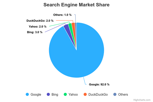 According to the latest statistical data, Google has shown dominance over other search engines, with a usage rate of 91.62% Balasubramanian & Sabarish, (2016), Panayotov (2024).