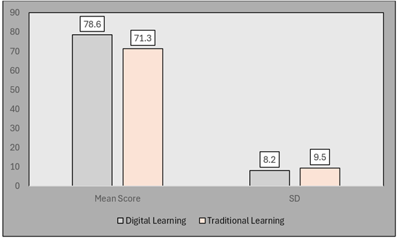 were exposed to digital learning performed significantly better than their